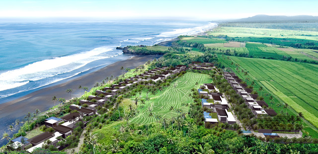 “Alila Villas Soori is a blissful paradise setting for beachfront living at its most relaxing, most stylish and luxurious. Located along the southwest coast of Bali, not far from the island’s famous Tanah Lot Temple, it lies on a gentle slope between verdant rice terraces and beautiful black-sand beaches overlooking the azure Indian Ocean.